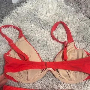 Two-piece H&M swim set. Padded underwire bikini top with adjustable straps. High-waist ribbed bottoms. Vibrant solid color. Ready for the beach or pool. Top underwire sz 34 D Bottoms sz 2