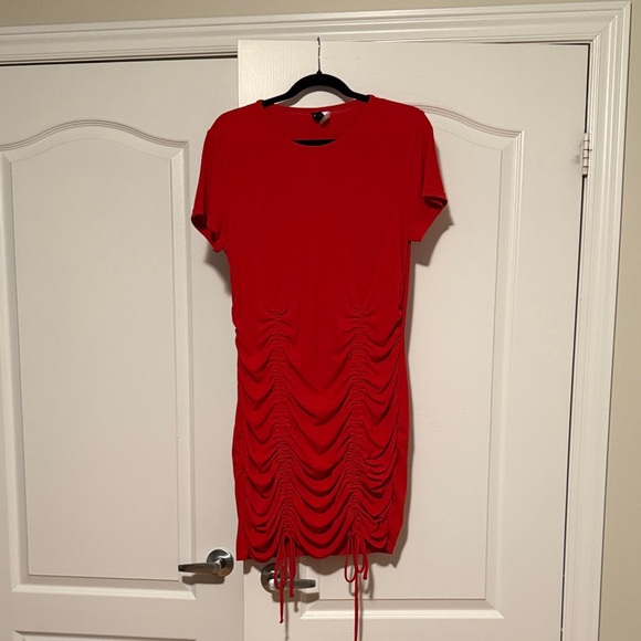 H&M Red Ruched Mini Dress