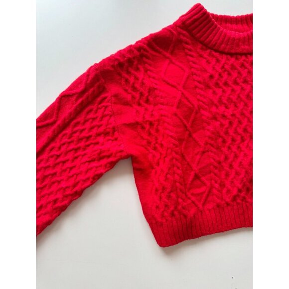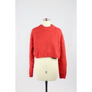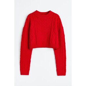 H&M Red Wool Blend Cable Knit Crew Neck Cropped Sweater, Size S