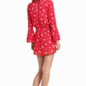 H&M Red Wrap Cutout Floral Romper with Pockets