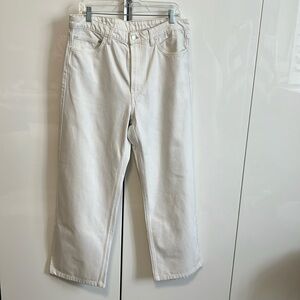 H&M Relaxed Wide Leg High Waist White Denim Jeans, Size 14