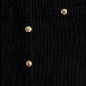 Chic black dress with gold button accents. Perfect for stylish outings.
