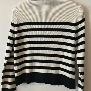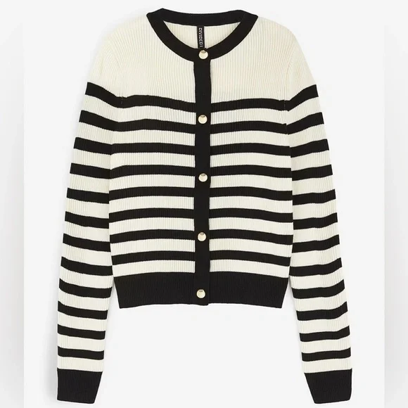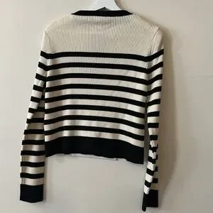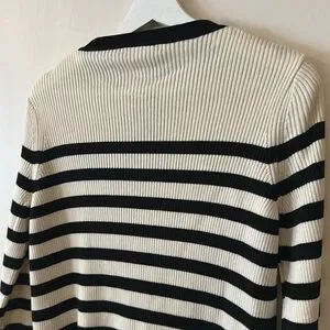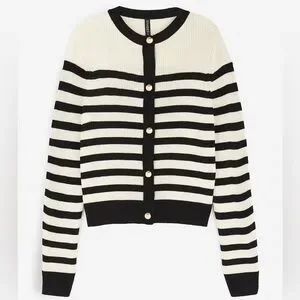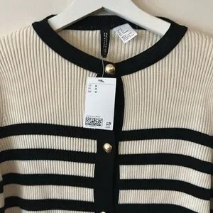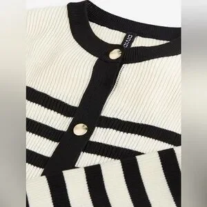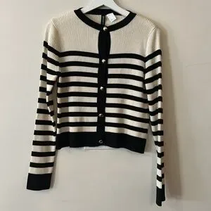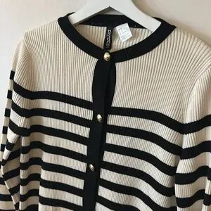 H&M Rib Knit Striped Gold Button Cardigan Sweater