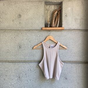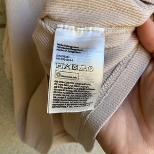 Stretchy H&M ribbed crop. No flaws to note, just don’t wear it as much as I thought I would. Perfect classic neutral.