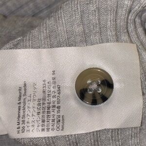 Soft ribbed knit grey sweater with a flattering V-neck and unique button-front detail. Slightly cropped fit, perfect for layering or wearing on its own. In good gently used condition no major flaws.