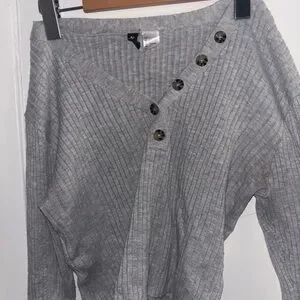 H&M Ribbed Grey Button Sweater
