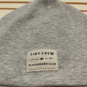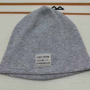 Double-layered hat in soft, rib-knit cotton jersey with a small appliqué at front.