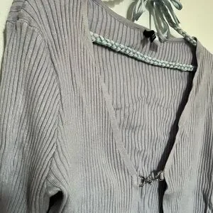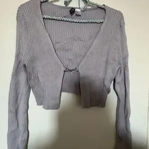 Add a touch of girly style with this cropped H&M ribbed lavender cardigan. Perfect for layering, this top adds a touch of cottagecore to any outfit.