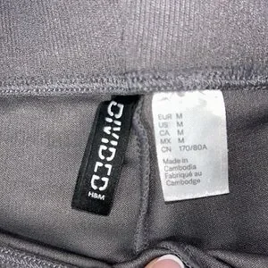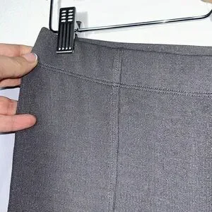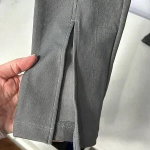 H&M Ribbed Pants with Front Slit. Excellent used condition. Gray, high waist, straight leg with front slit. Elastic waistband. Poly/elastane blend. See photos for measurements.