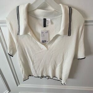 H&M Ribbed Polo Shirt Fitted Short Sleeve