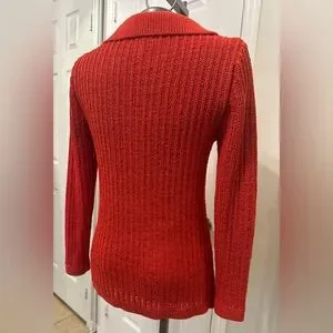 Cardigan in a soft rib knit. Collar, buttons at front, and long sleeves. Ribbing at button placket, cuffs, and hem.