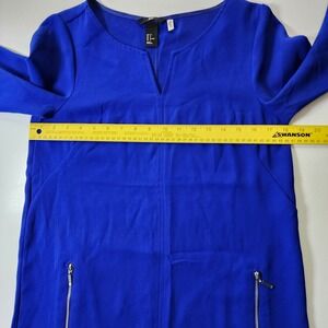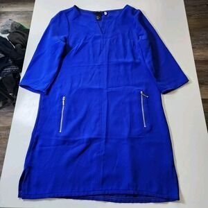 H&M Royal Blue Dress Womens 8 Silver Zipper Pockets Classic 3/4 Sleeve Y2K 90s