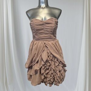 💟H&M Ruched Chiffon and Ruffled Strapless Dress