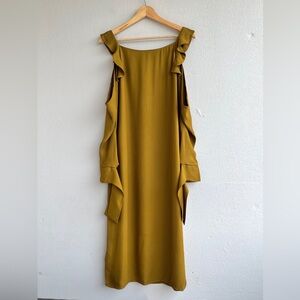 - midi shift dress in a rich, dark gold colour