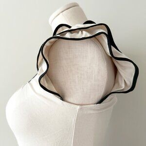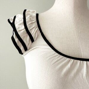 H&M Ruffled Sleeve Top Womens Size XS Cream with Black Trim