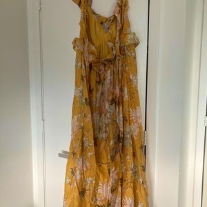 New w/o tag. Purchased 2 sized up from my usual size because everything was sold out, but just couldn’t make it work. It’s so beautiful on the model though and in pics other customers posted! Shipping from Bloor & Yonge. Patterned, calf-length dress in a woven lyocell blend. Low-cut V-neck at front with ruffle trim extending to and crossed below bust. Square neckline at back, opening at back with wide ties, and flutter sleeves. Narrow elastic at back of waist and a voluminous, softly draped skirt. Partly lined.