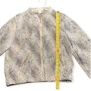 Super fun jacket. White with animal prints. Excellent condition. Size 8. See photos for condition and measurements to ensure proper fit.