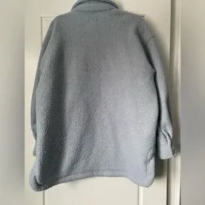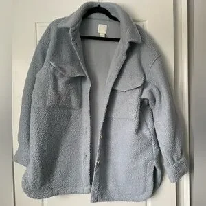 Baby Blue Button Up H&M Shacket. Cozy and perfect for transitional weather in the spring and fall to throw over leggings. Hits just below the bum on myself 5 foot 3.