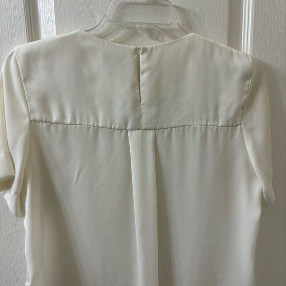 H&M Sheer Cream Blouse Short Sleeves Pleated Front Women's 4