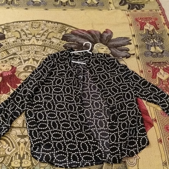 Beautiful shirt, nice and long looks great with tights or denim.. this shirt was worn twice