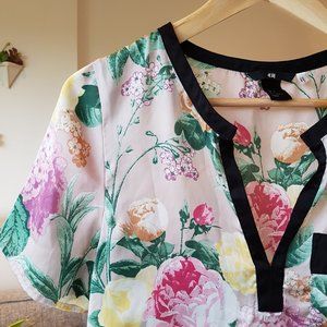 H&M Silky Floral Short Sleeve Blouse Size 6