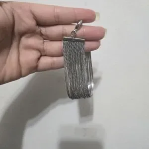 Elegant silver chain tassel earrings. Perfect for any occasion. Adds a touch of sophistication.