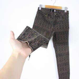 *H&M Skinny Leg Jeans Women's Brown Low Rise 5-Pocket With Abstract Print
