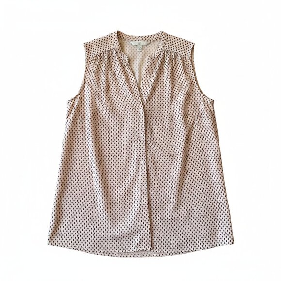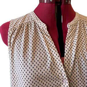 H&M Sleeveless blouse Top V-Neck button down beige With Black details, Size M