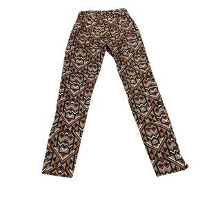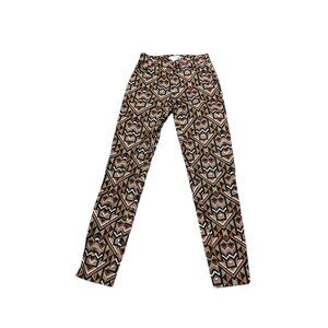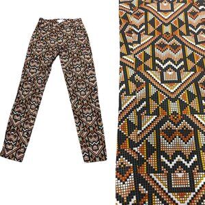 H&M Slim Fit Pants Sz 2 Aztec Tribal Side Zip Flat Front 1 Faux Back Pocket