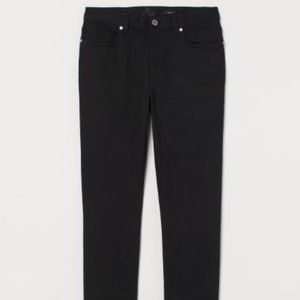 H&M Slim Fit Twill Black Pants, Size 36. 5-pocket pants in washed stretch twill with a regular waist and zip fly. Slim fit - relaxed over thighs and tapered from knees down for a casual, well-tailored look. Cotton 98%, Elastane 2%. Measurements: Waist: 36 inches, Rise 11 inches, Inseam 28 inches.