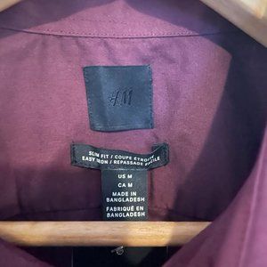 Medium slim-fit shirt from H&M, New with tags, easy iron, Grape wine color, Polyester and cotton blend