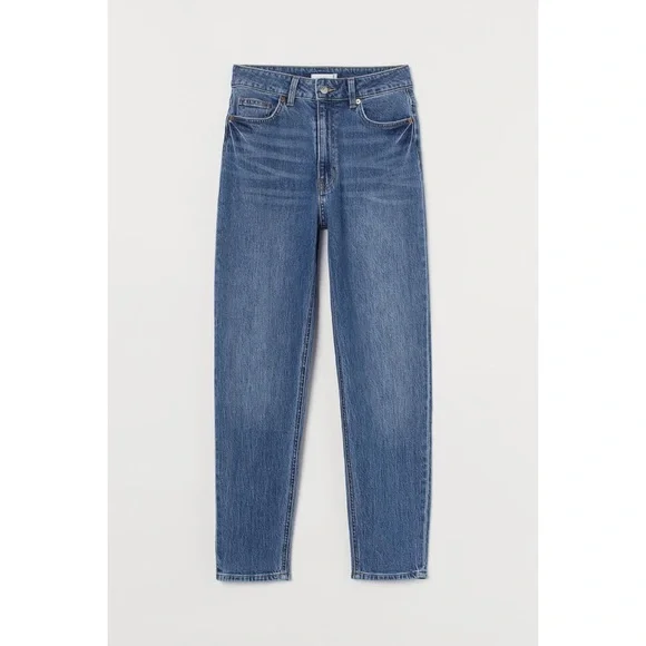 5-pocket, ankle-length jeans in slightly stretchy denim. Extra-high waist, zip fly, and gently tapered legs. Cotton content is partly recycled.