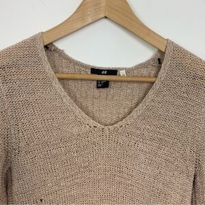 H&M Slouchy Open Knit V-Neck Sweater Beige XS