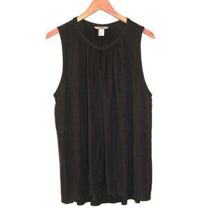 H&M Smocked Keyhole-Accent Sleeveless Blouse in Black (Large)