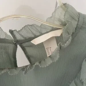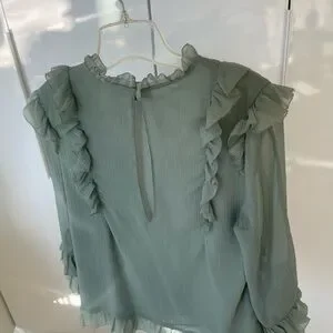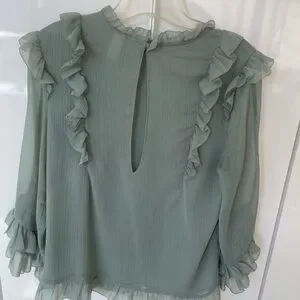 Chic blouse with delicate ruffles. Soft green color. Perfect for versatile styling.