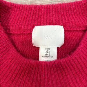 Soft, knit sweater oversized with wool content. Crew neck, dropped shoulders, and long sleeves. Ribbing at neck, cuffs, and hem.