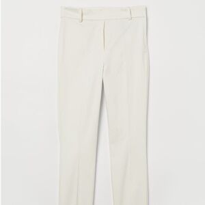 Description: Sharp and sleek, these beautiful cream coloured trousers from H&M are the perfect combination of sophisticated and comfort. These are mid-rise trousers with an elasticized waist, metal clasps, button and concealed zip closures, belt loops, a faint leg pleat, two front side pockets and two mock back pockets, a straight ankle-length, and a relaxed fit. Breezy with a lightweight stretchable material, these trousers are simply the best and an essential for the effortlessly put together elevated look.