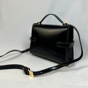 A sleek and versatile crossbody bag designed for everyday elegance. Crafted from coated vegan leather, this bag features an adjustable shoulder strap, secure magnetic flap closure, and chic strap detailing with metal buckles.