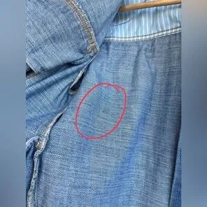 - light discolouring on the inside of the collar and a little on the striped lining, not visible when wearing