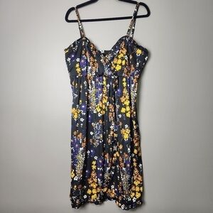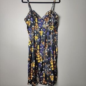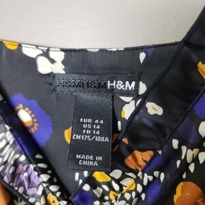 H&M Sundress Floral Satin Slip Dress Spaghetti Strap Size 14