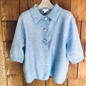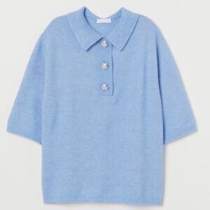 H&M Sweater Womens Size M Blue Wool Blend Rhinestone Flower Buttons SS Collar