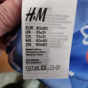 Polyester scarf. Designed by Hennes & Mauritz, Sweden. Measures 31" X 31". Blue, white and orange. The cheetah is tan with black spots. In like new condition - worn twice.