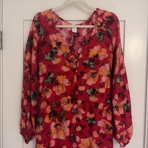 H&M TIE-BELT BALLOON-SLEEVED DRESS Sz SM