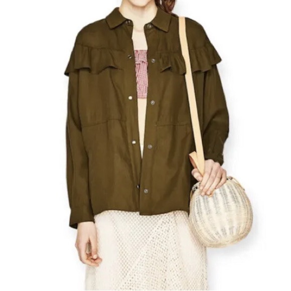 H&M TRF Khaki Ruffle Utility Jacket