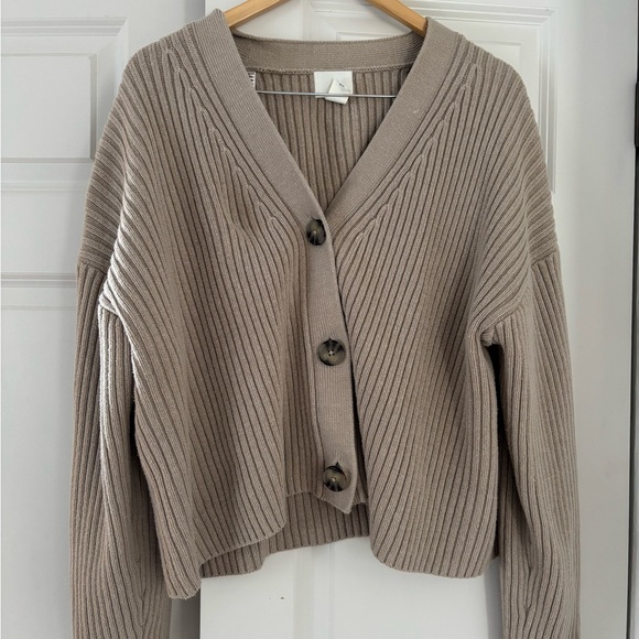 H&M Taupe Ribbed Cardigan Sweater