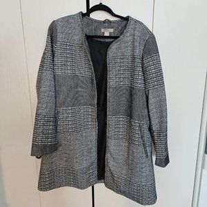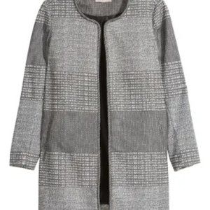 Super cute lightweight black and white coat from h&m. Short, straight-cut coat in textured fabric with front pockets and no buttons. Lined. Great for fancier events or wearing to work.