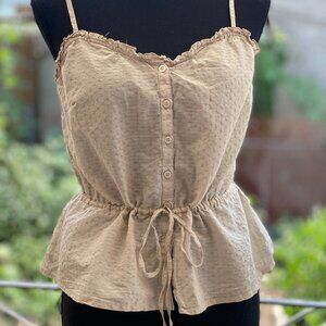 H&M Tie Waist Peplum Hem Front Button Beige Top