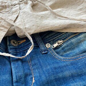 H&M beige peplum top with a flattering tie waist and button-down front. Lightweight and easy to style — perfect for pairing with denim or skirts. Effortlessly chic for work or casual days out.