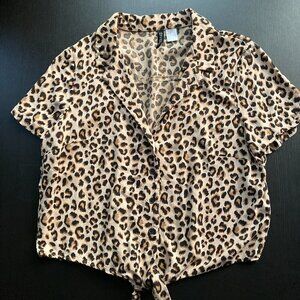 H&M Tie-hem Cheetah print viscose button down Shirt Size 6 oversized