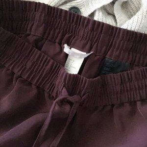 Soft maroon track pants to dress up or down featuring an elastic waistband and adjustable drawstring for a perfect fit. Satin side stripes with bottom side-zips. 100% Polyester.